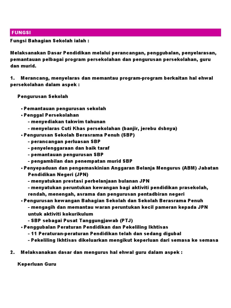 Fungsi Bahagian Pengurusan Sekolah Harian Pdf